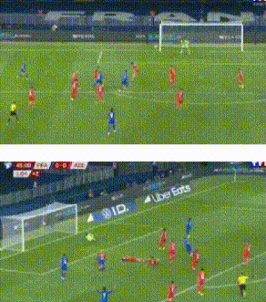 当时是上半场补时阶段,姆巴佩在前场左侧靠近中路的地方得球,然后姆巴佩开始带球突破,先是带球连续过掉对方3名防守球员,然后埃基蒂克将球回做,接着姆巴佩带球杀入禁区,面对对方多人的围堵,姆巴佩在人缝中觅得射门线路,冷静兜射球门右下10分角得手帮助法国取得领先。可以看到姆巴佩带球左右连续扣晃,让对方整条防线分崩离析,瞬间瓦解,姆巴佩简直就像是如入无人之境,简直不要太牛啊。